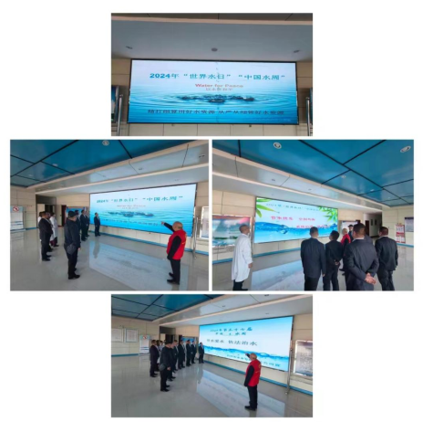 機(jī)關(guān)黨支部黨員志愿者帶領(lǐng)下,與會(huì)代表在忻州市節(jié)水教育基地展板前認(rèn)真學(xué)習(xí)了習(xí)近平總書記關(guān)于保護(hù)水資源的系列講話精神。在忻州市節(jié)水教育基地忻州市水資源電子沙盤前了解忻州市水資源現(xiàn)狀,聽取了志愿者講解“節(jié)水優(yōu)先、空間均衡、系統(tǒng)治理、兩手發(fā)力”的治水思路和全省“三縱九橫、八河連通”水網(wǎng)體系建設(shè)成果。在水質(zhì)檢測(cè)大樓門廳大顯示屏前聽取了志愿者講解2024年“世界水日?中國(guó)水周”宣傳標(biāo)語(yǔ)深刻內(nèi)涵和節(jié)水常識(shí)。