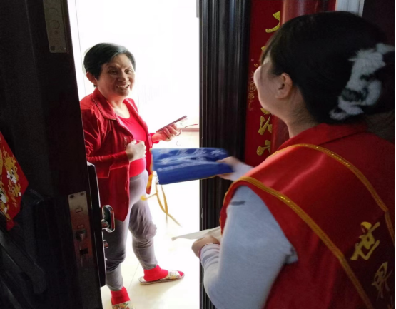 (圖為:忻州水務(wù)機(jī)關(guān)黨支部黨員志愿者在利民新苑入戶宣傳節(jié)水常識(shí))
