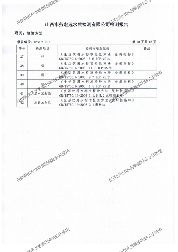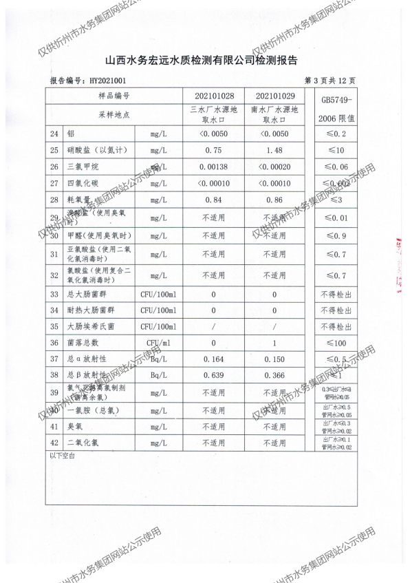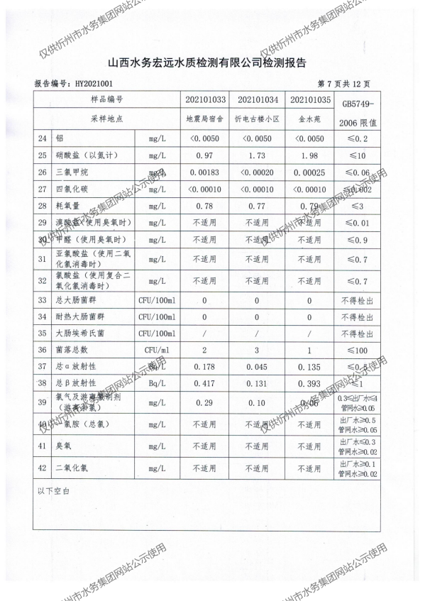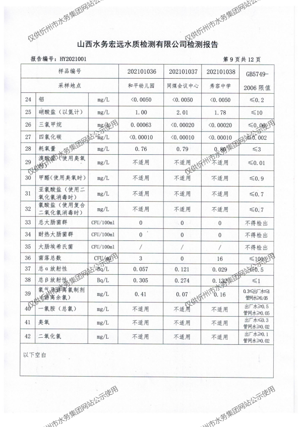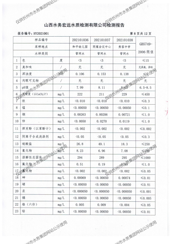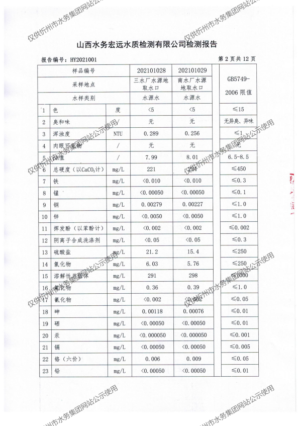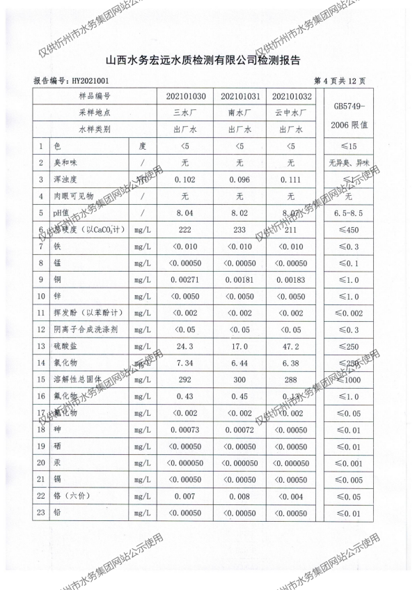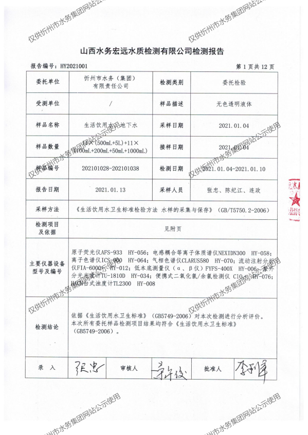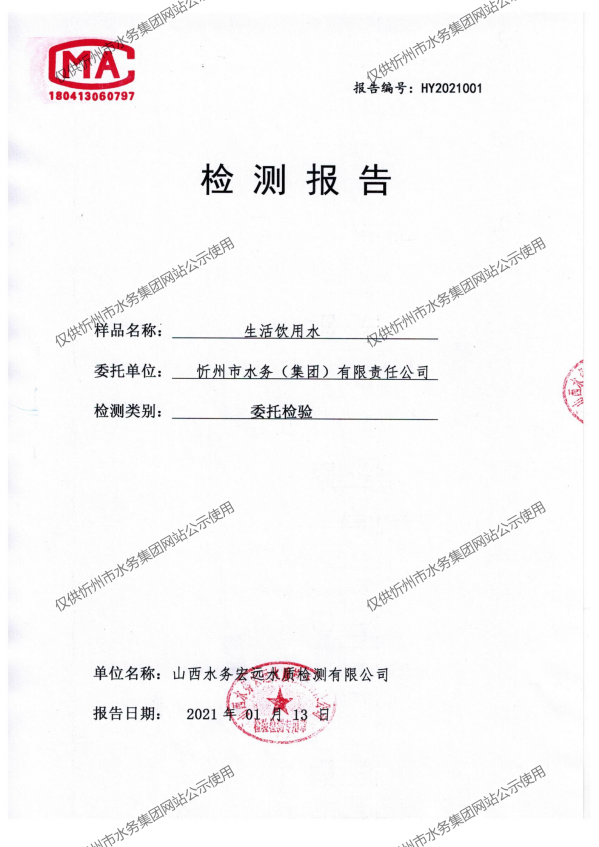 忻州城區(qū)公共供水水源水、出廠(chǎng)水、管網(wǎng)水、管網(wǎng)末梢水2021年1月份水質(zhì)信息公示